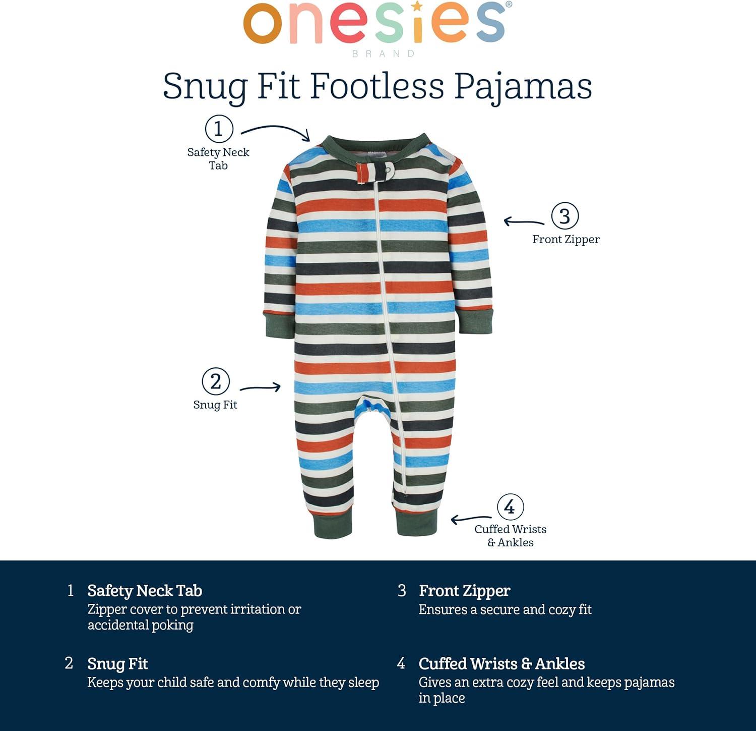 Onesies Brand baby-boys 3-pack Snug Fit One-piece Cotton Pajamas(Safari)
